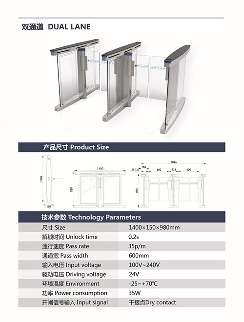 速通門系統(tǒng)紅外防夾功能,速通門B323A在擺臂復(fù)位的過程中紅外檢測到人在通道中,擺臂會自動回到打開狀態(tài)。